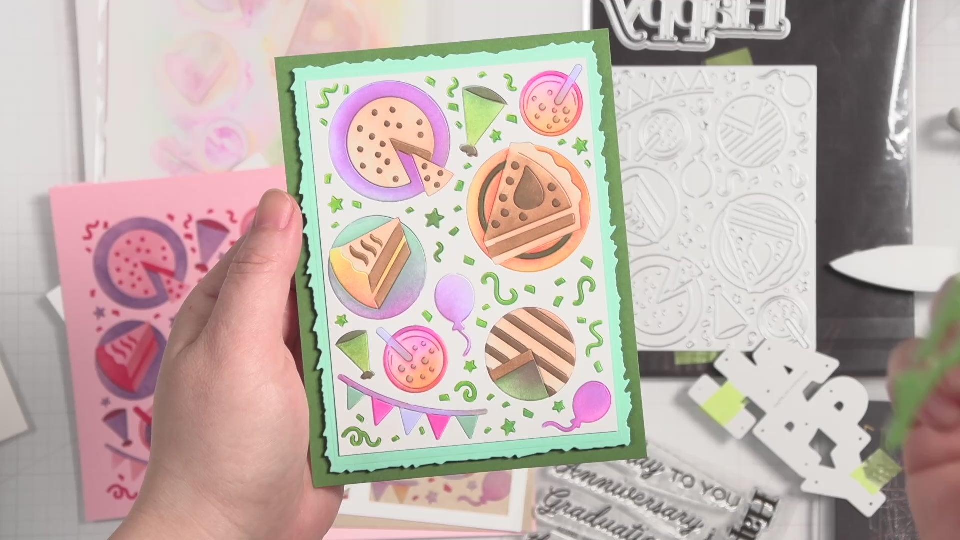 This die features the word “Happy” arranged vertically with the letters slightly overlapping, so you can cut it out as one solid piece. Try framing two opposite corners with your favorite flower images, then place this word die front and center on a card.