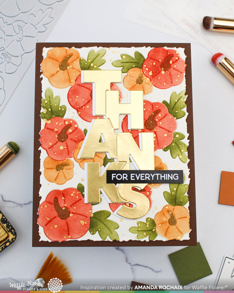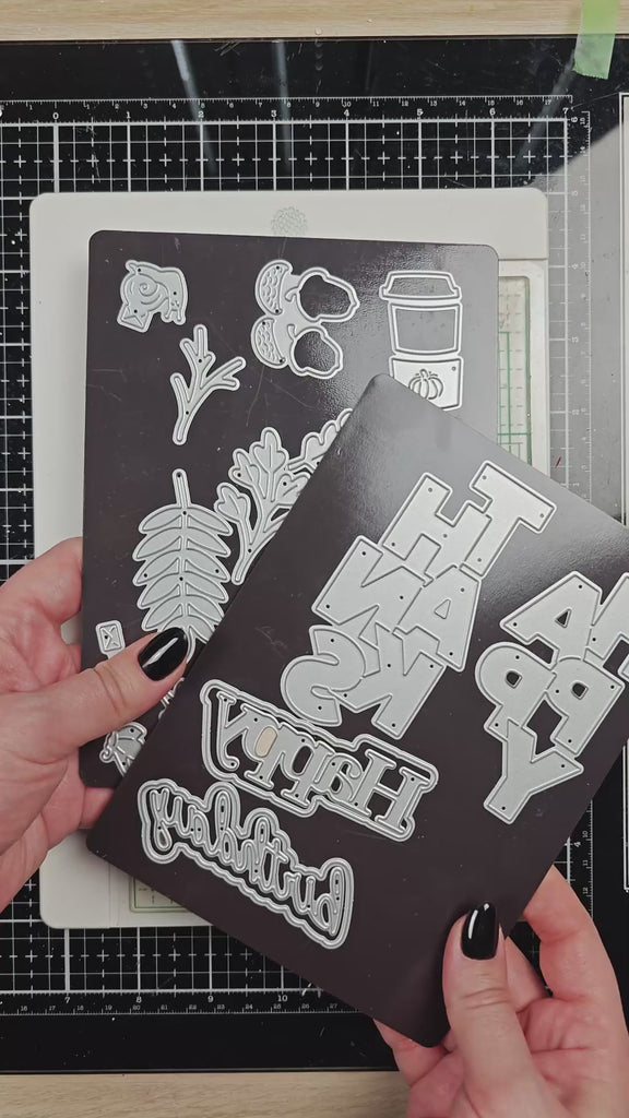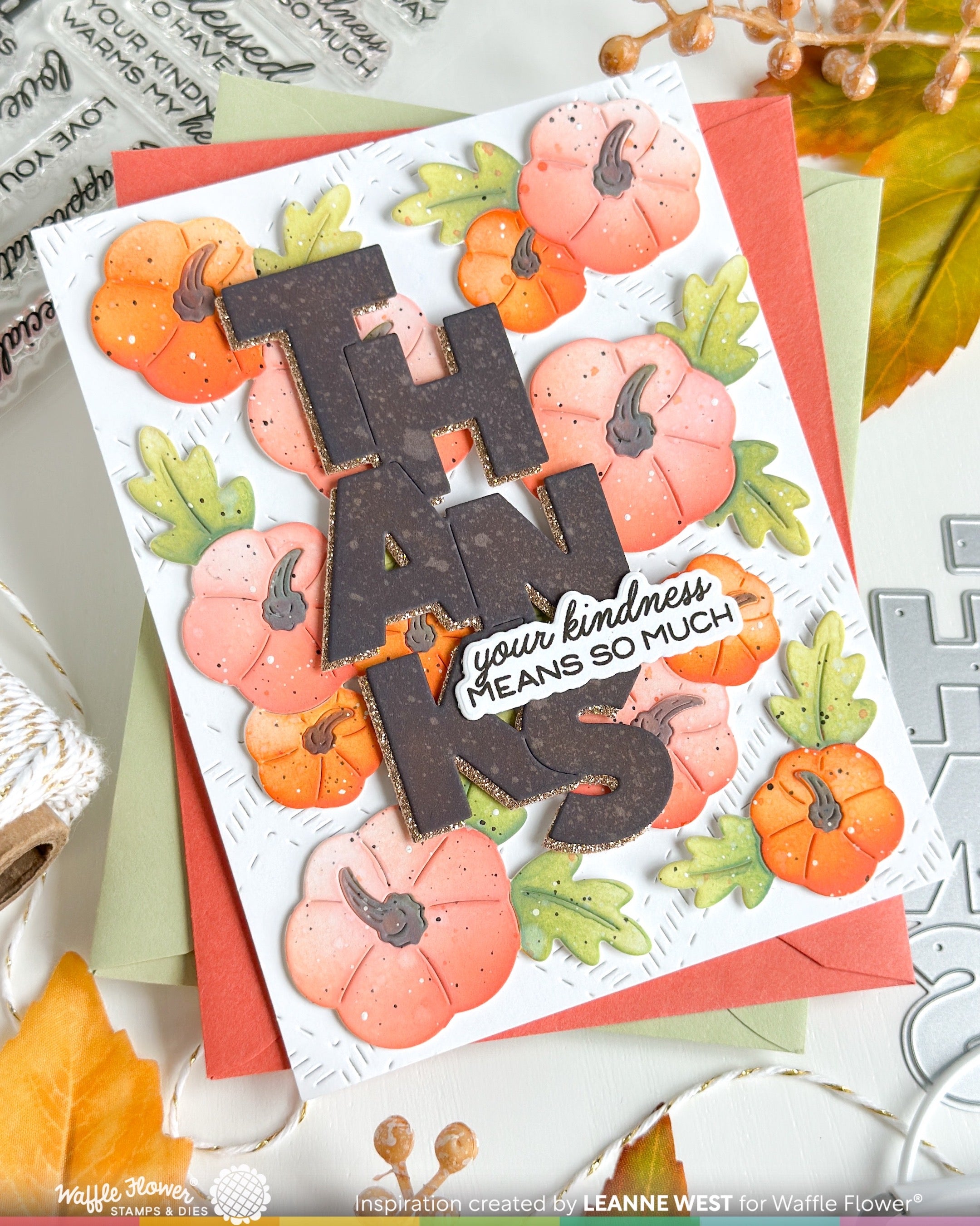 This die features the word “Thanks” arranged vertically with the letters slightly overlapping, so you can cut it out as one solid piece. Try framing two opposite corners with your favorite flower images, then place this word die front and center on a card.