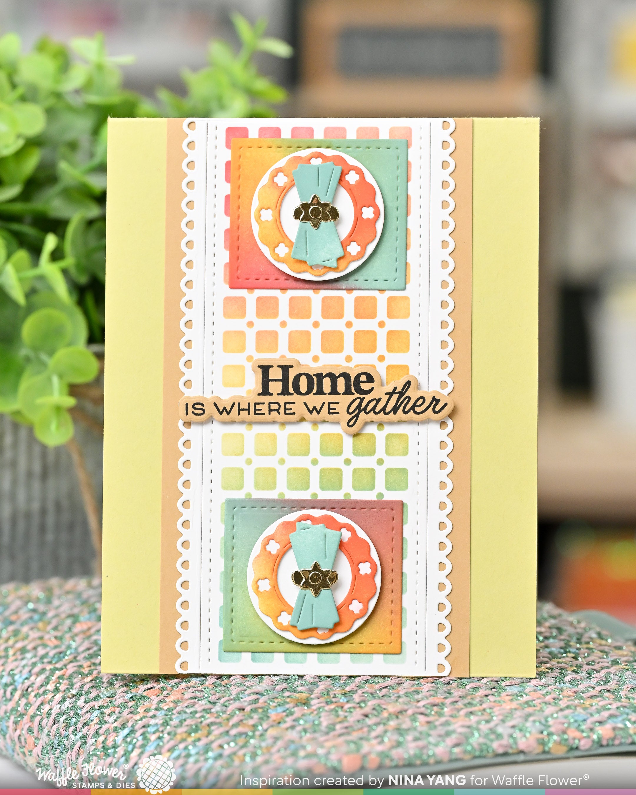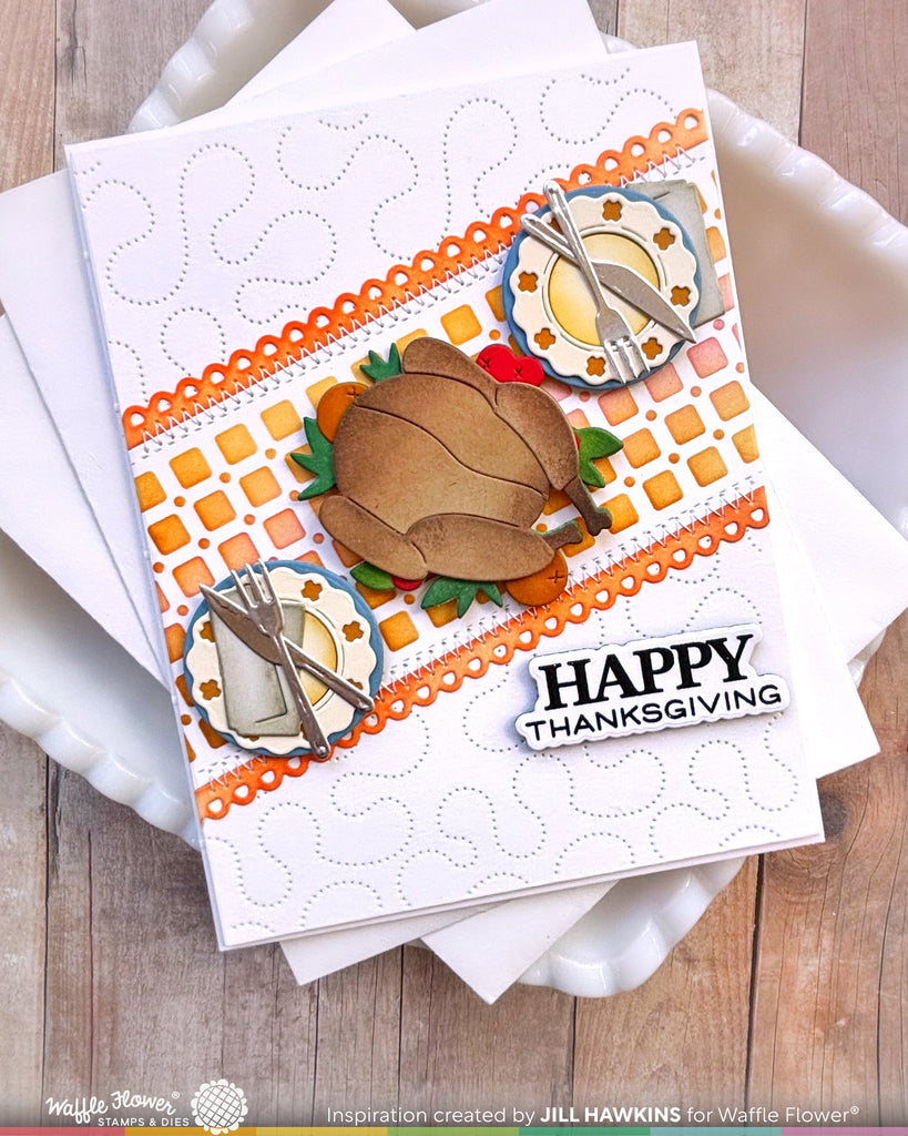 Cut from patterned paper, or use the Table Runner Pattern Stencil to add color to the scalloped panel and turn it into a festive table runner across your card.