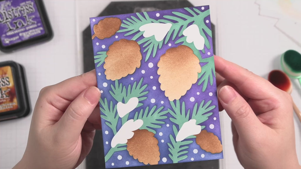 This die set cuts out the pinecones and snow shapes for the Snowcapped Pinecone Stencil and Snowcapped Pinecone Details Stamp Set. The dies are numbered to make matching the pieces to the stamp and stencil easy.