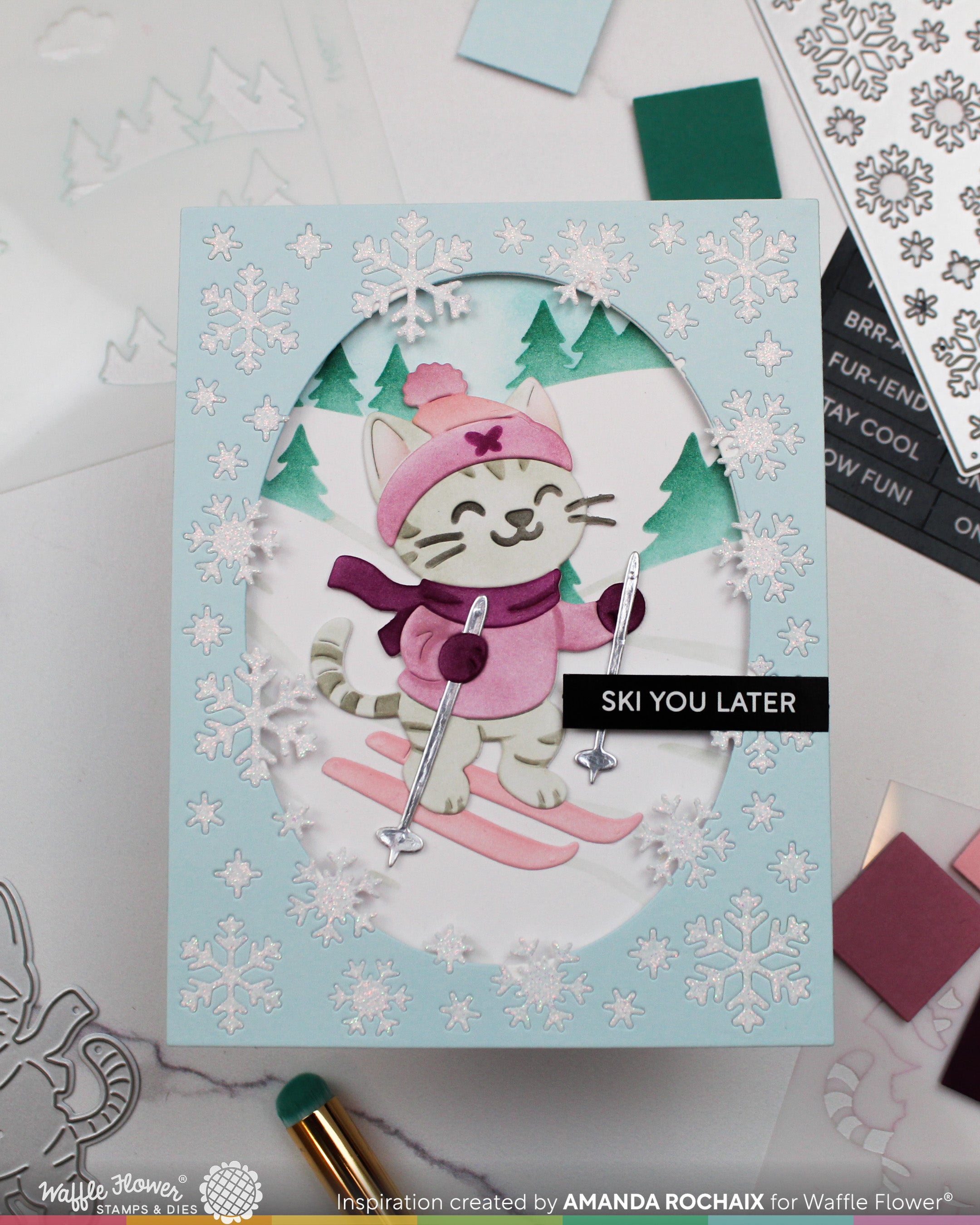 This stencil set helps you create snowy hill scenes with trails, sky, trees, and clouds. The wavy edge on stencil two lines up with the Snowy Hills Die for added definition. Use with the die and add-on die for more options.