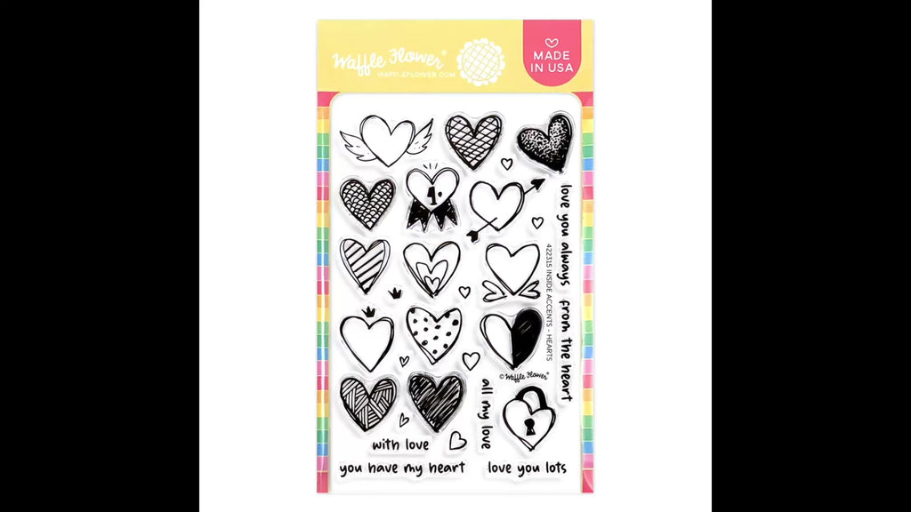 This playful set is full of hand-drawn hearts and little greetings for adding a sweet touch to the inside and outside of your cards! With 18 unique heart designs and phrases like “you have my heart” and “from the heart,” you’ll have plenty of fun ways to finish your message with love.