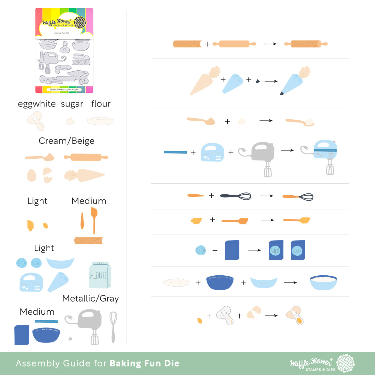 This set includes all the little tools and ingredients you need to build a playful kitchen scene such as rolling pins, whisks, mixing bowls, piping bags, and more. Great for pairing with our Postage Collage Baking Fun Stencil, these dies are perfect for celebrating birthdays, friendship, or anyone who loves to bake. Use your favorite cardstock colors or ink blend for even more fun combinations.