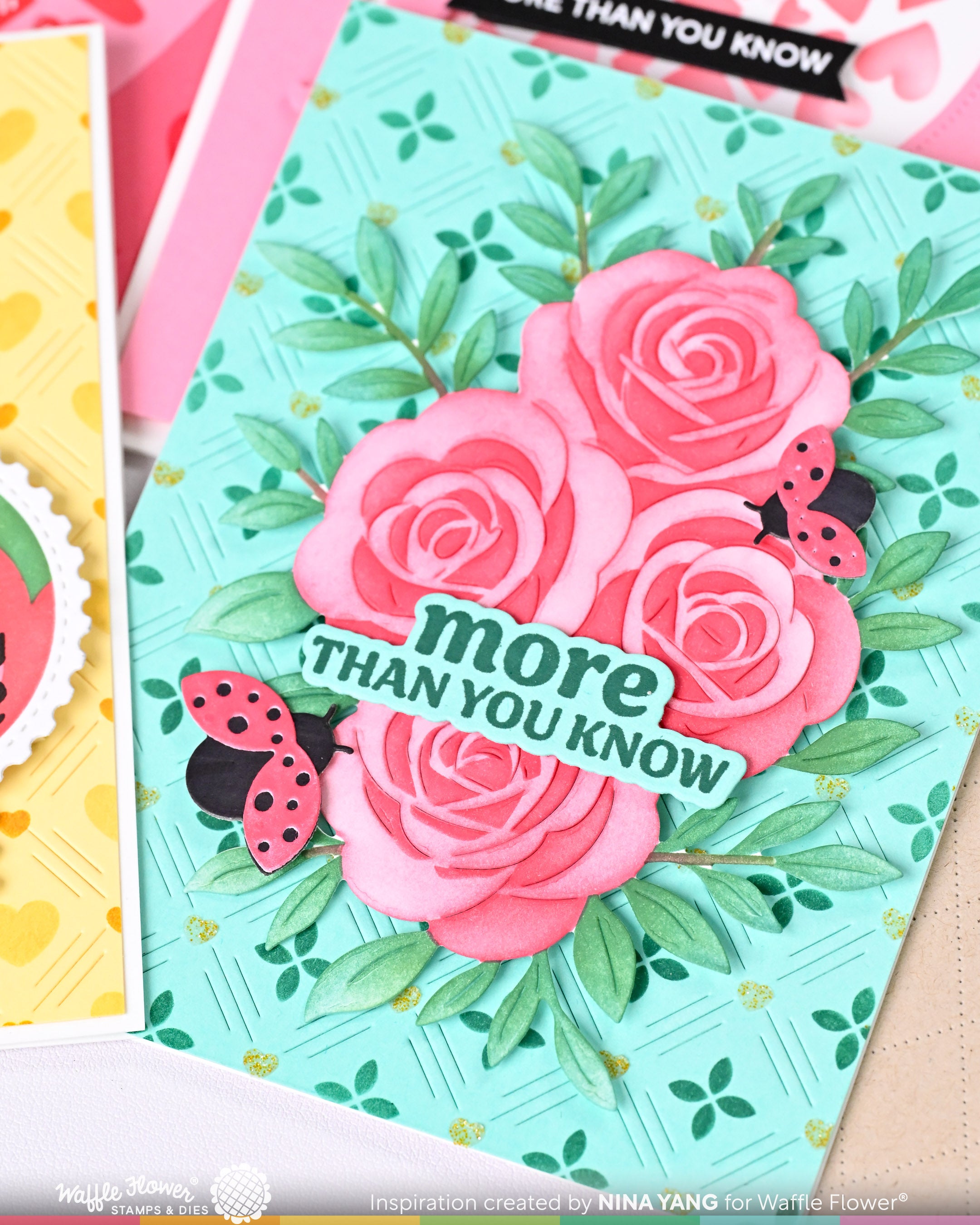 This small die set includes six ladybug designs, each with a body and a wing layer. The pieces are grouped onto two dies, one for cutting the bodies (in black) and one for the wings (in red or any color you like).