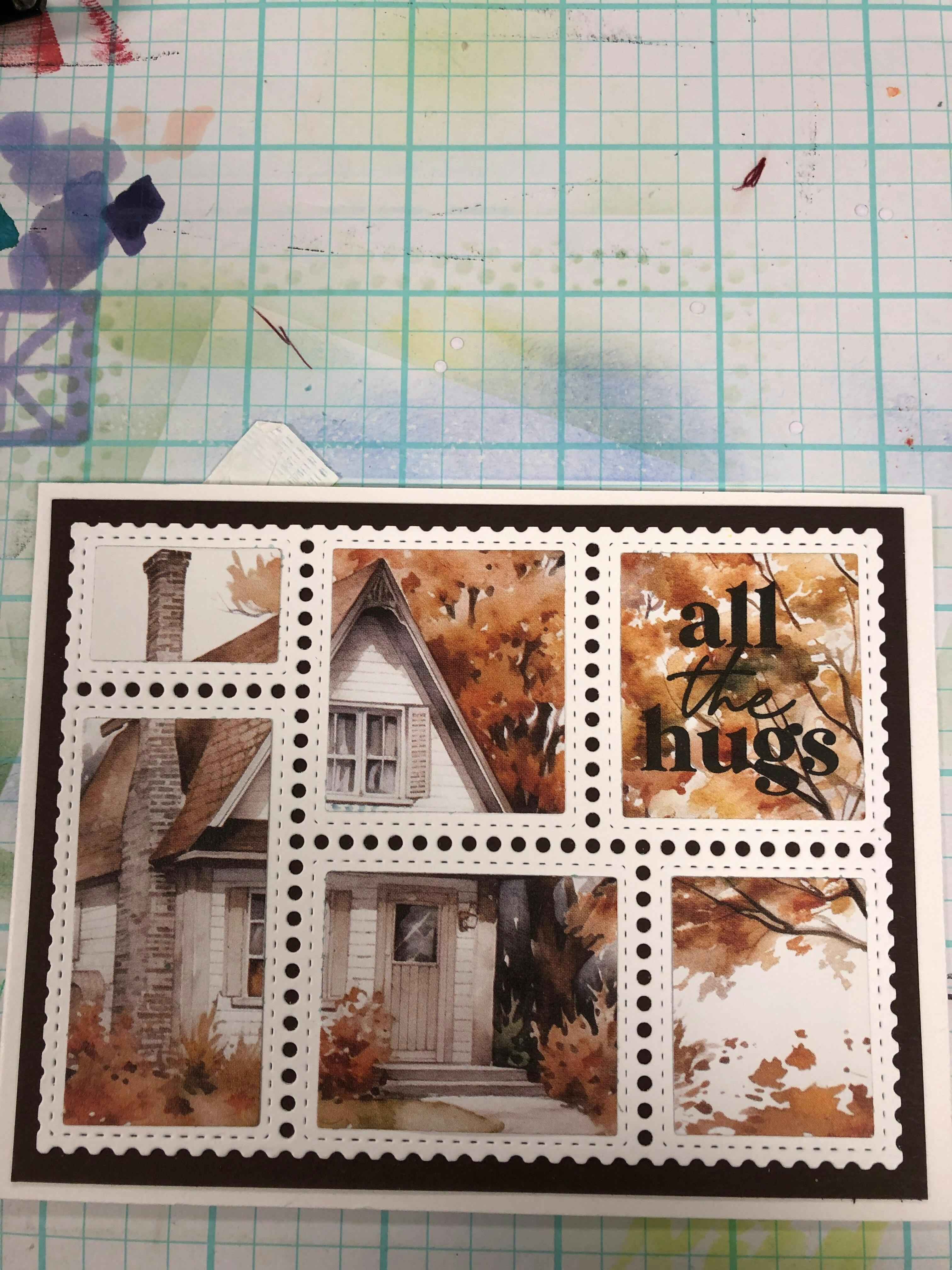 Designed to work with all of the coordinating Postage Collage stencils, the Blocks die includes a frame die that cuts out all 6 windows for the panel die from the Postage Collage Die. Here are a few uses for it: