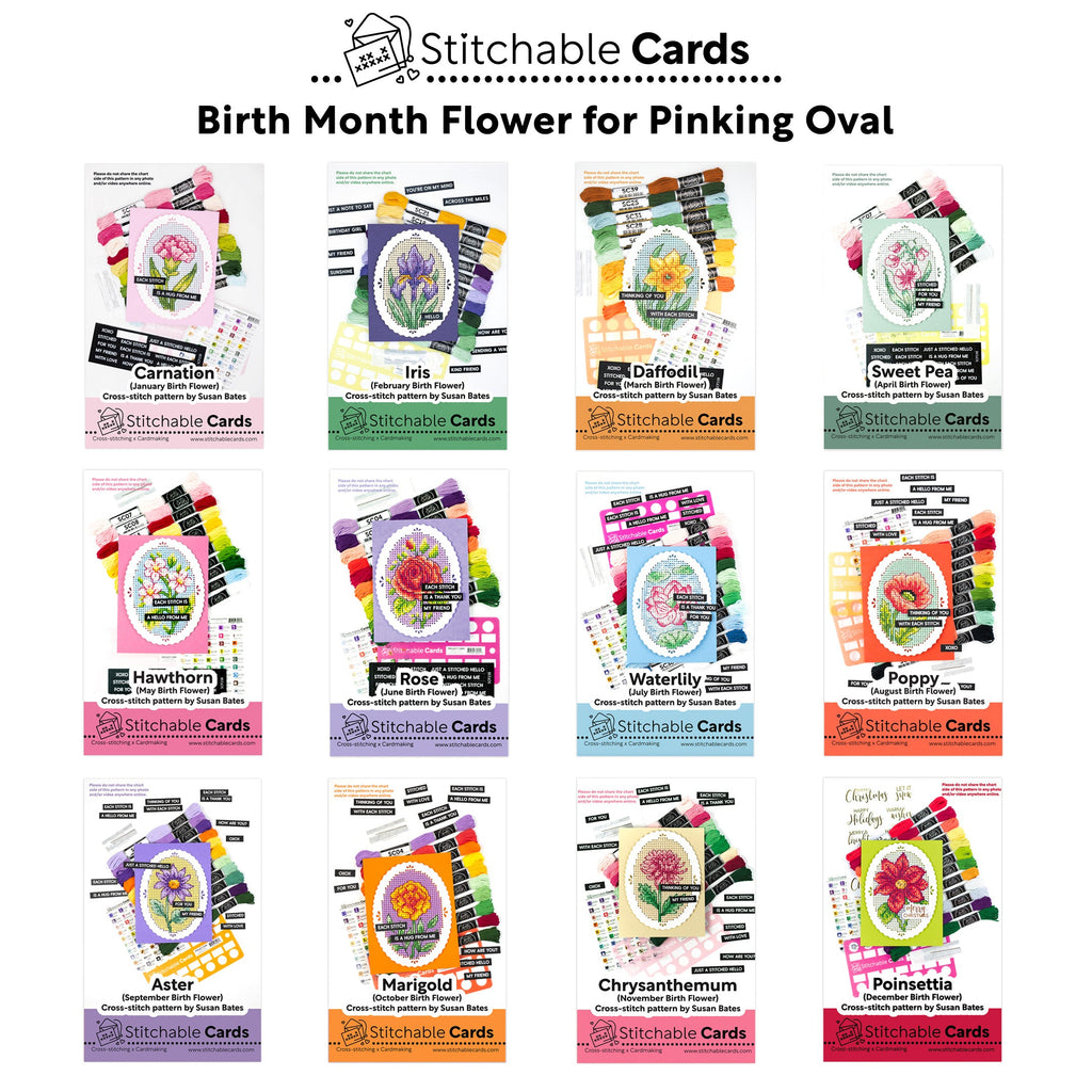 This bundle includes 12 half-letter-size, full-color printed patterns designed for Stitchable Pinking Oval Shapes.