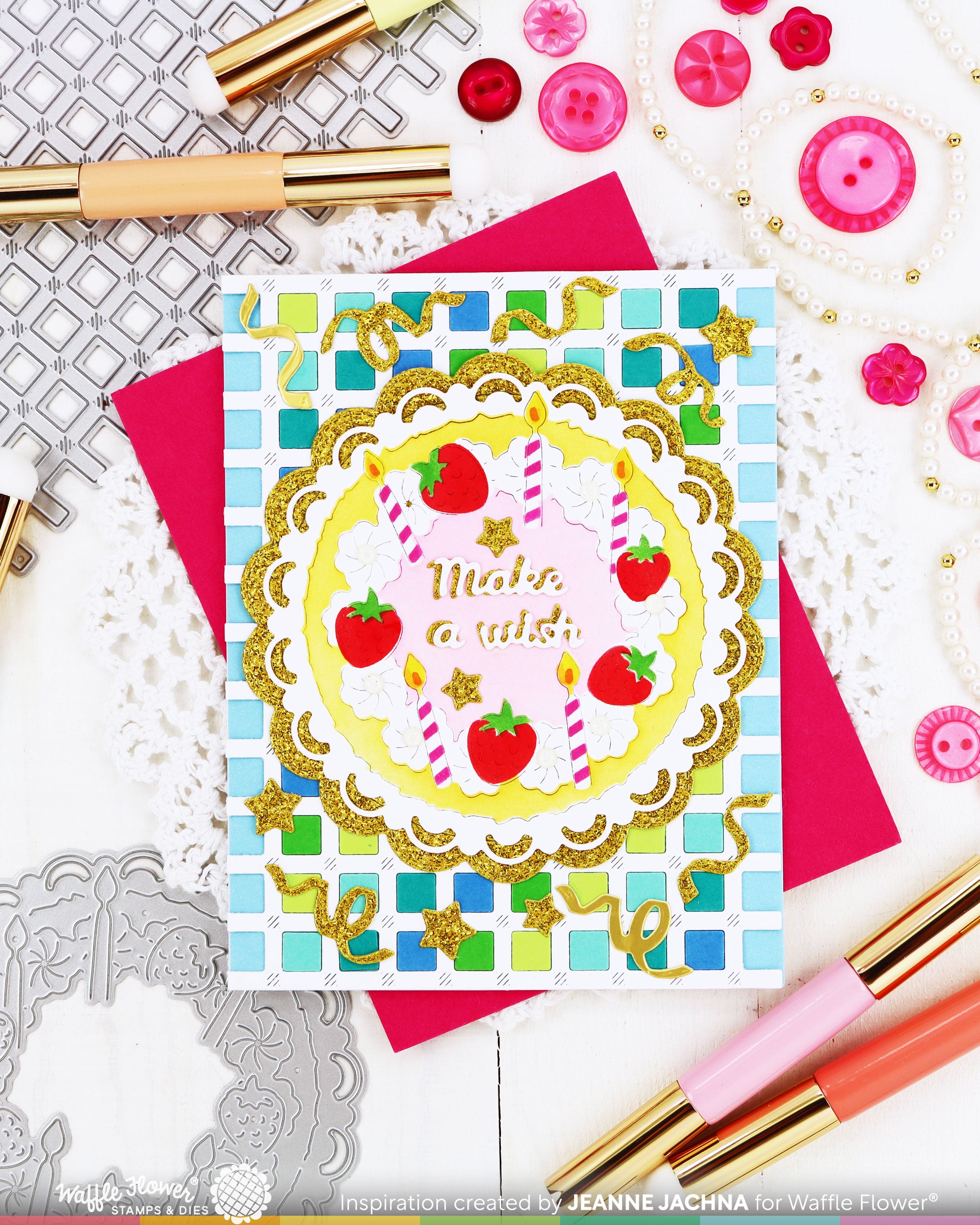 Celebrate in style with the Cake Focal Die-n-stencil! This set includes one large die that cuts out the full cake design in a single piece. Just stencil over it to add color and detail to the strawberries, candles, and frosting. The sentiment is a separate die, so you can customize your greeting or swap it out for something else. A fun and easy way to add a festive touch to your cards!
