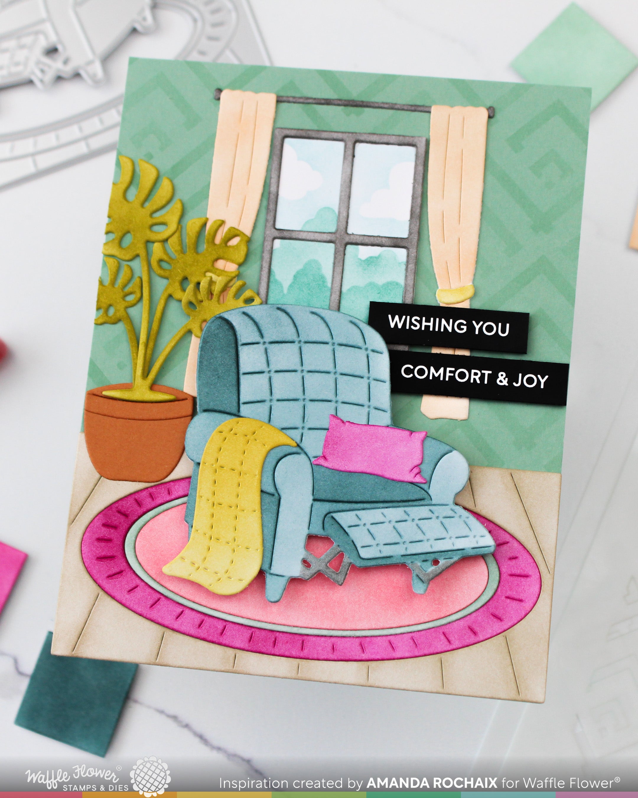 This stencil is designed to add color to the diecuts from the Cozy Spot Die (SKU# 422348). Works beautifully with the Cozy Spot Add-ons Die (SKU# 422347) and Cozy Spot Pets Die (SKU# 422356) for even more scene-building fun.