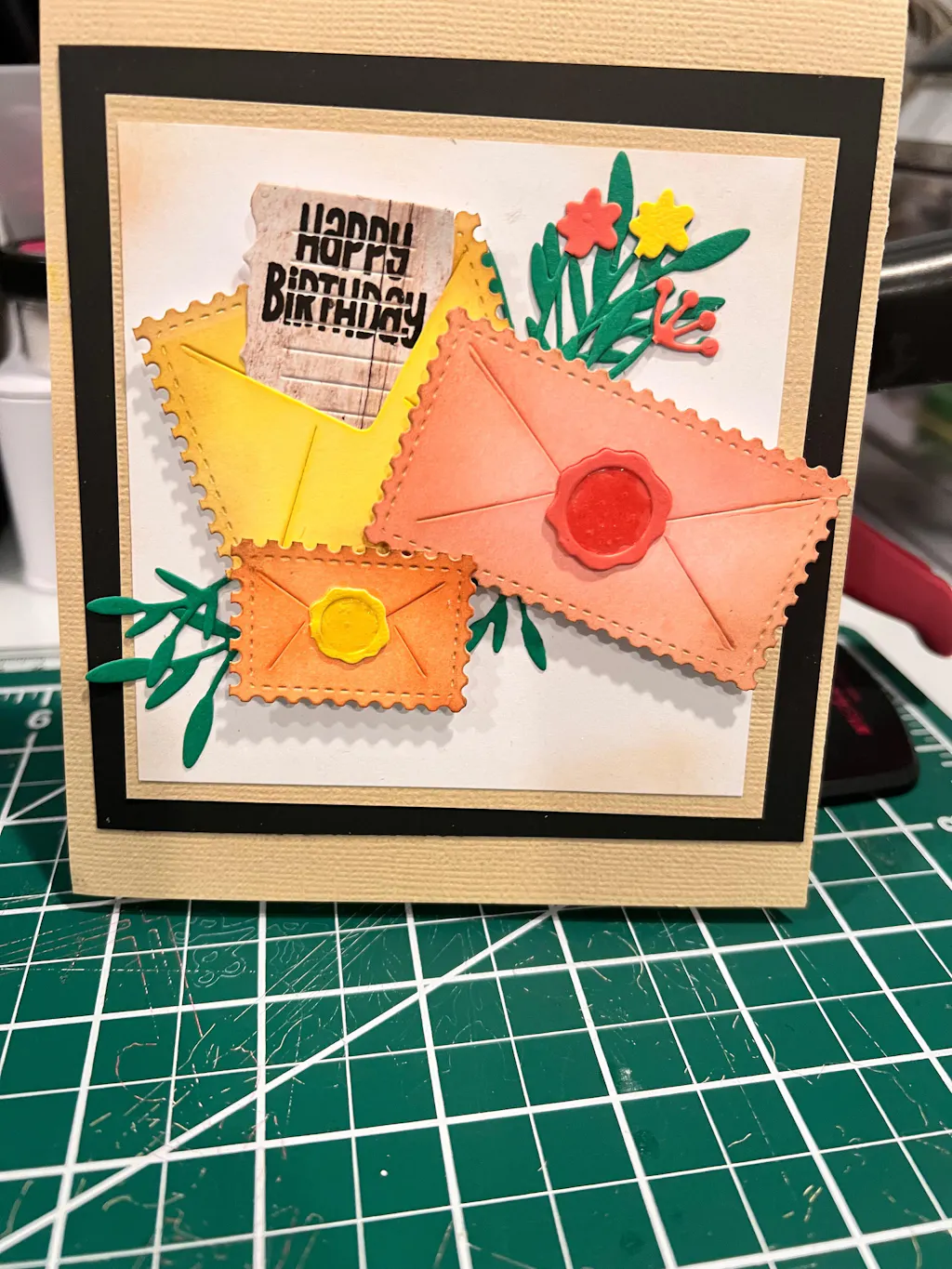 - The envelope textures are now easier to see and pair beautifully with the opened mail die from the Mini Seals Die.