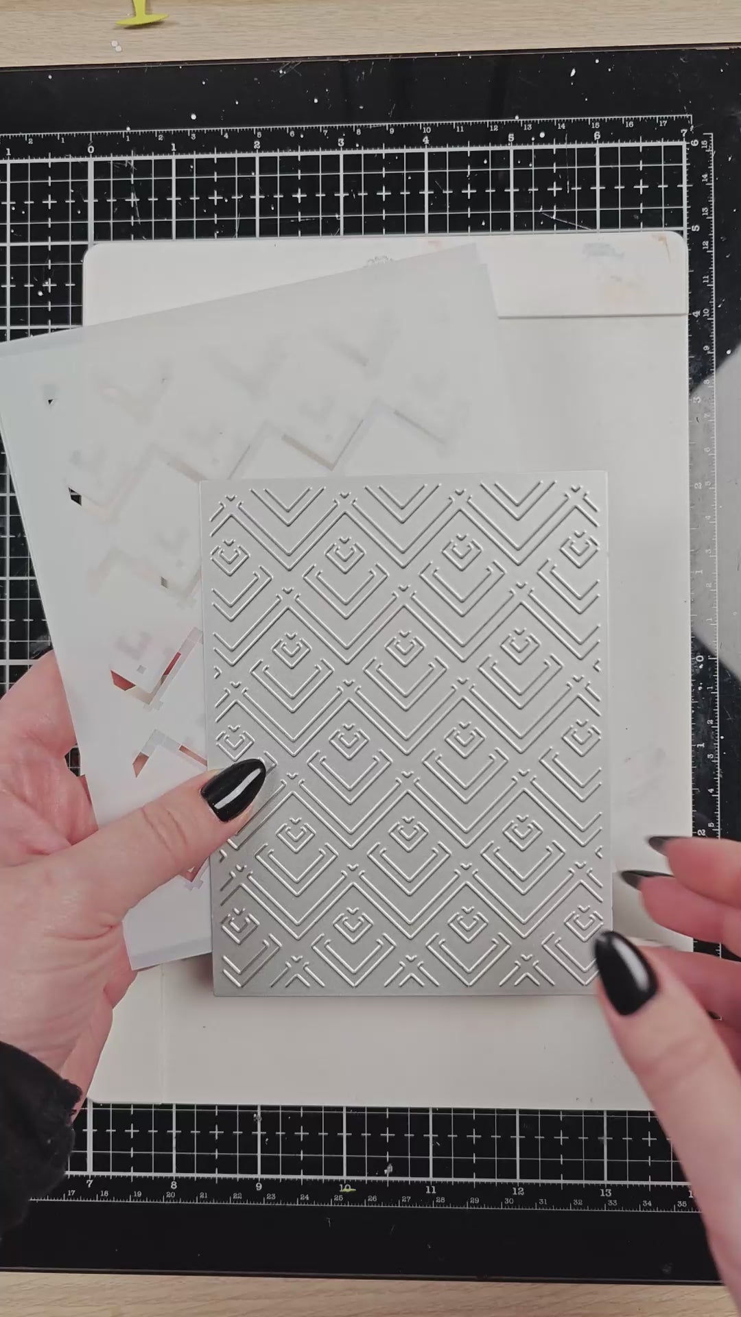 This stencil features a playful chevron pattern with extra details for fun ink-blending options. Use it alone or pair with the Happy Chevrons Texture Die for a cool look.
