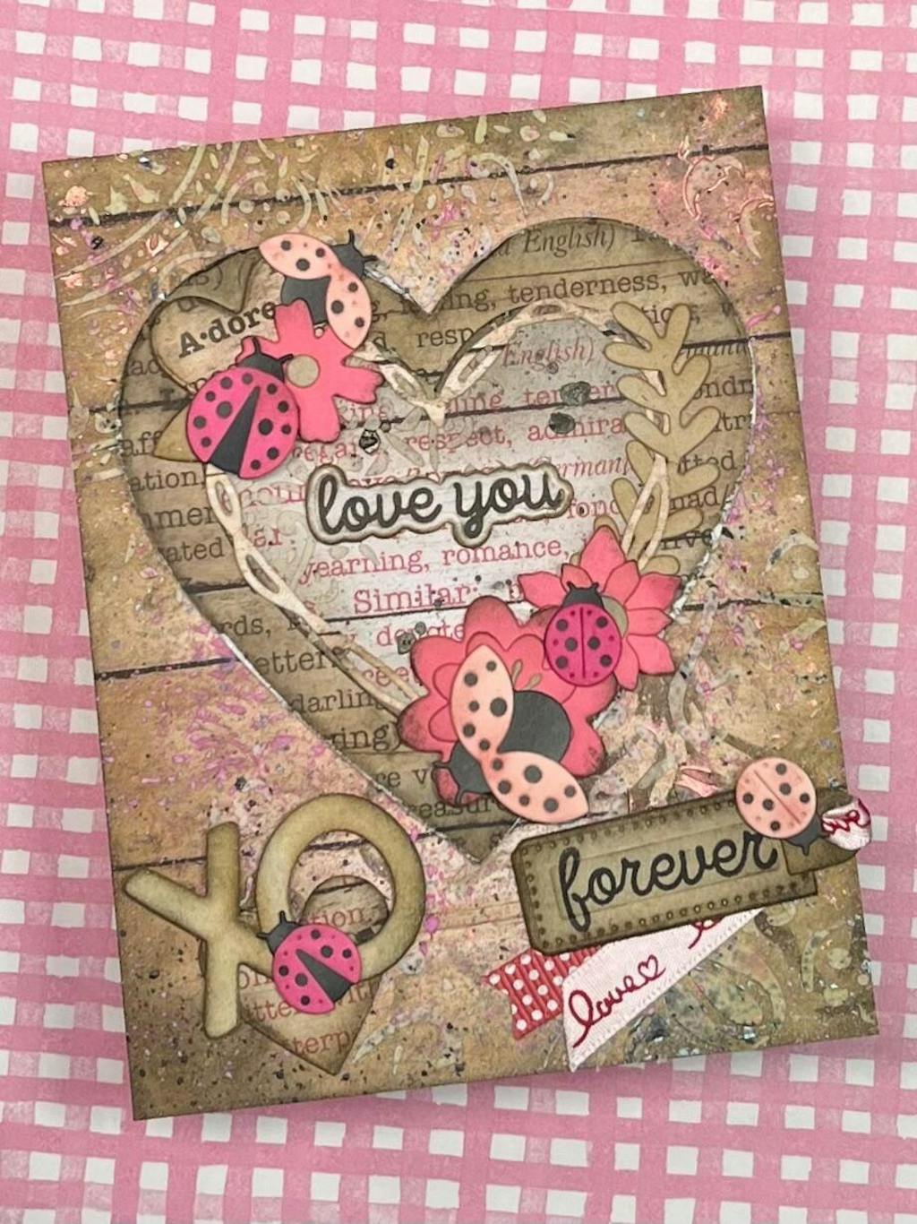 This small die set includes six ladybug designs, each with a body and a wing layer. The pieces are grouped onto two dies, one for cutting the bodies (in black) and one for the wings (in red or any color you like).