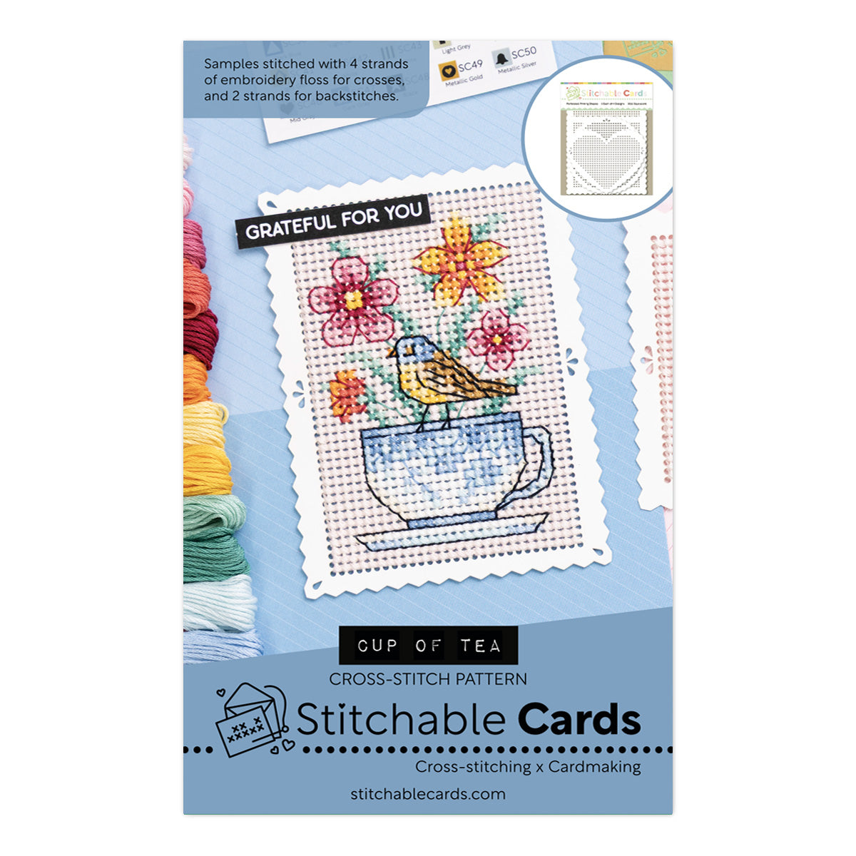 Both SC and DMC thread colors are listed. All threads used can be found in our 48-color Thread Pack.